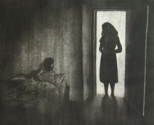 Deborah Barton’s latest work, as in dream, presents an ambiguous dreamscape of memory, suggestions of a glimpsed past in the landscape of our lives, in limited edition burnished aquatints. Blended facts, realities and fictions ultimately leave questions unanswered in a subdued, shifting narrative. Many of the works seem to unlock childhood for the viewer, but the artist prefers not to explain too much and let people discover their own experience, ideas and personal stories in the work.