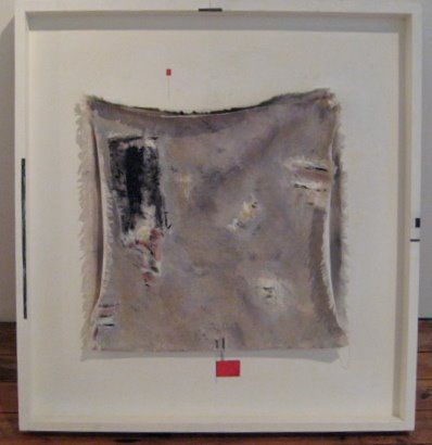 However, he continued to explore both painterly unstretched hangings, and constructionism – with a beautiful painterly element balanced against a minimalist background, such as the subtle and sophisticated Metro. The projecting wooden edges of these works are part of the painting – to work with and against the central elements. A Peebles trademark was the small detail or spot of colour, which often appeared to ‘escape’ the formal composition.