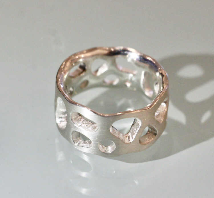 Elfi Spiewack’s jewellery finds its origins in her immediate environment. Using her European training and knowledge of materials, her designs are often inspired by nature and the processes of experimentation and play.