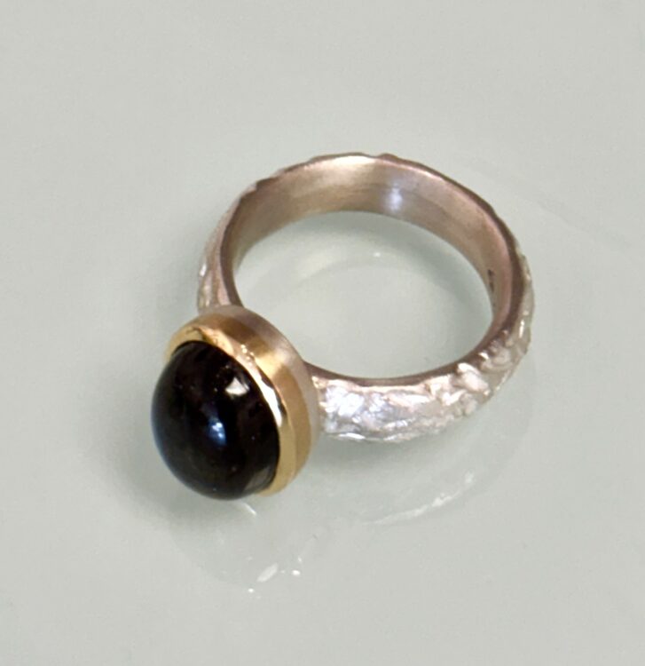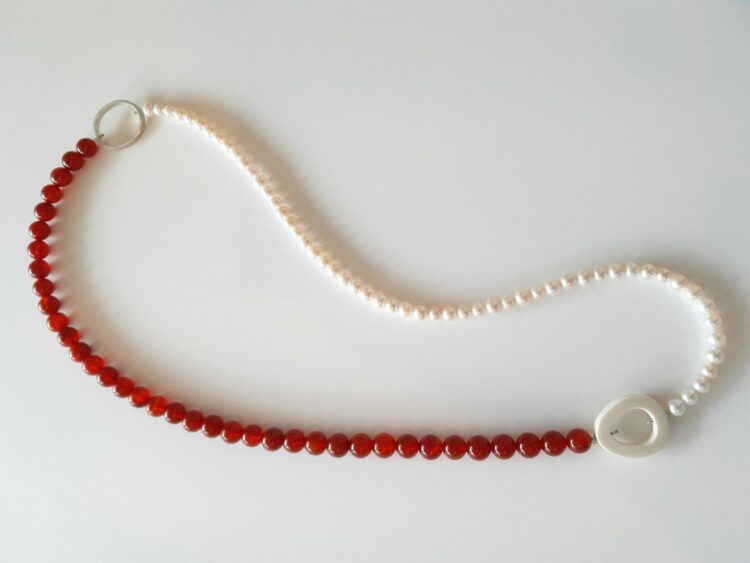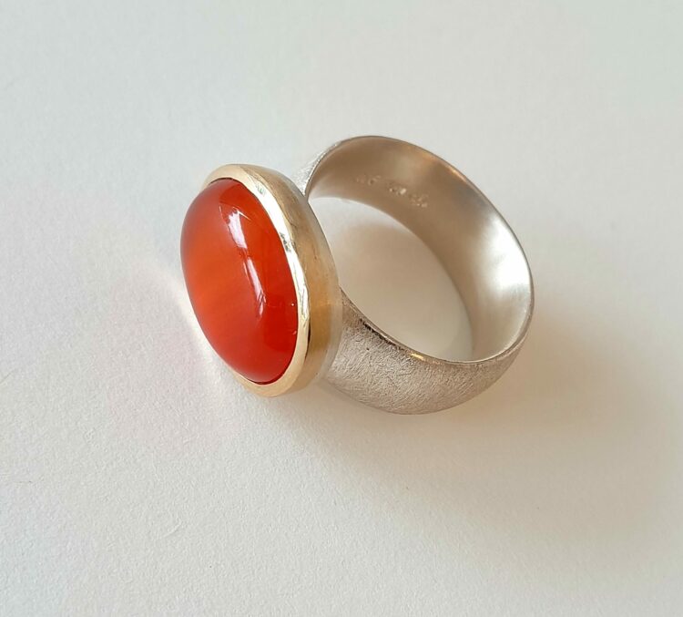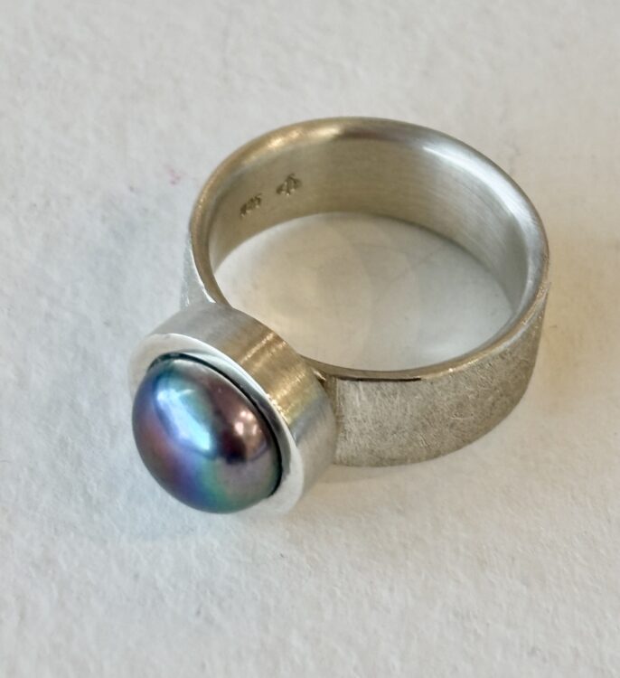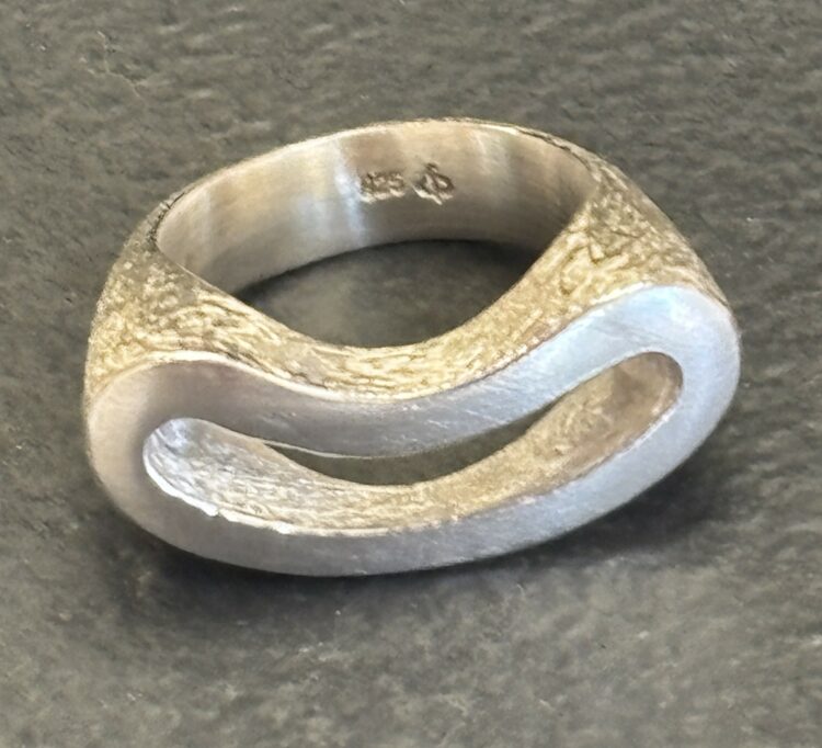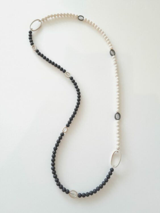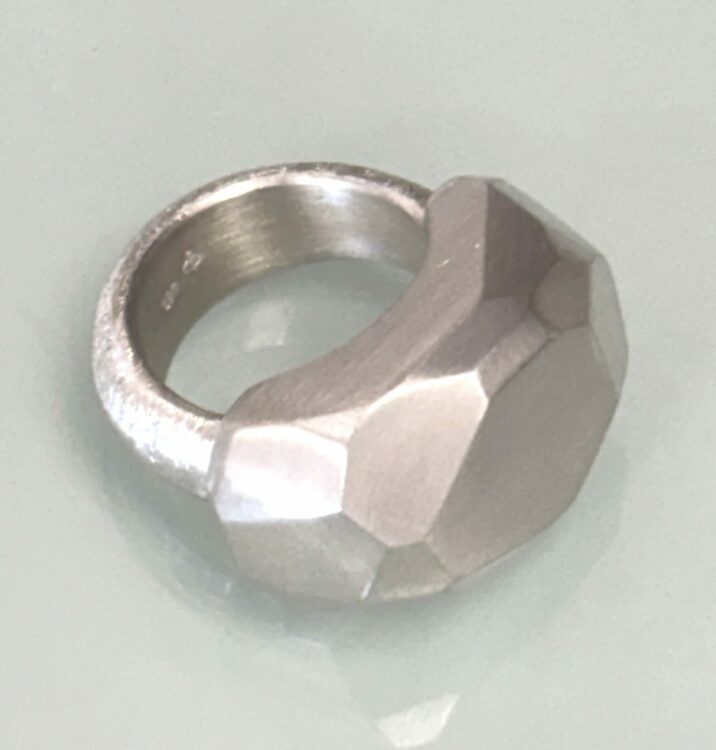 While conventional jeweller’s metals of silver and gold often form the basis of her work, Elfi enjoys incorporating found objects into her designs, elevating non-precious materials to the realm of precious jewellery. Each collection of jewellery explores and extends the properties of her chosen medium, such as the colour and light of gemstones or the contrast of worked silver with the dense opacity of beach pebbles, broken china or the qualities of polished bone.