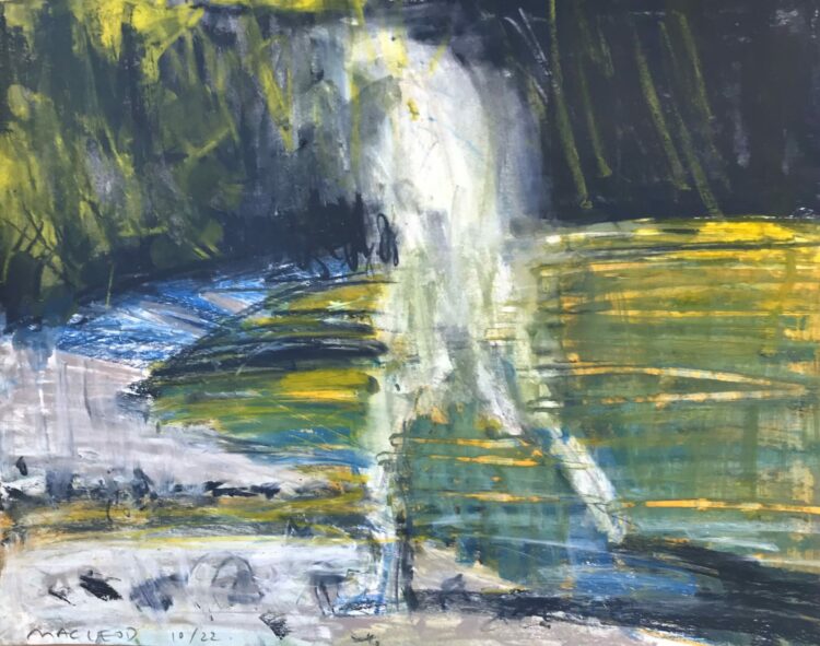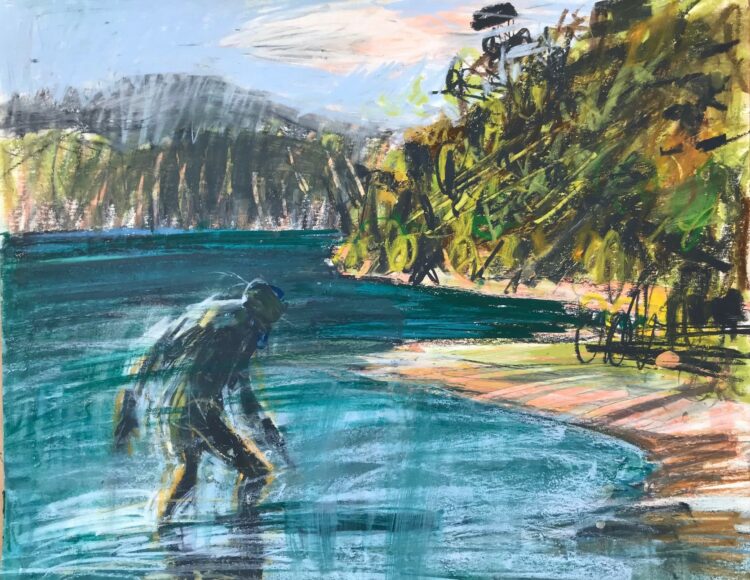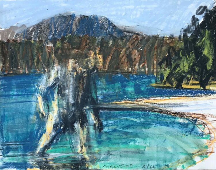 Euan Macleod visited Meretoto/Ship Cove with Gregory O’Brien in October 2022 as part of The Diversion Gallery’s Meretoto project taking artists to respond to that place of sustained early contact between Māori and Captain James Cook. They produced several collaborative works, alongside Macleod’s striking studies in pastel on paper, expressive evocations of place, light, history, and a sense of connection through time.