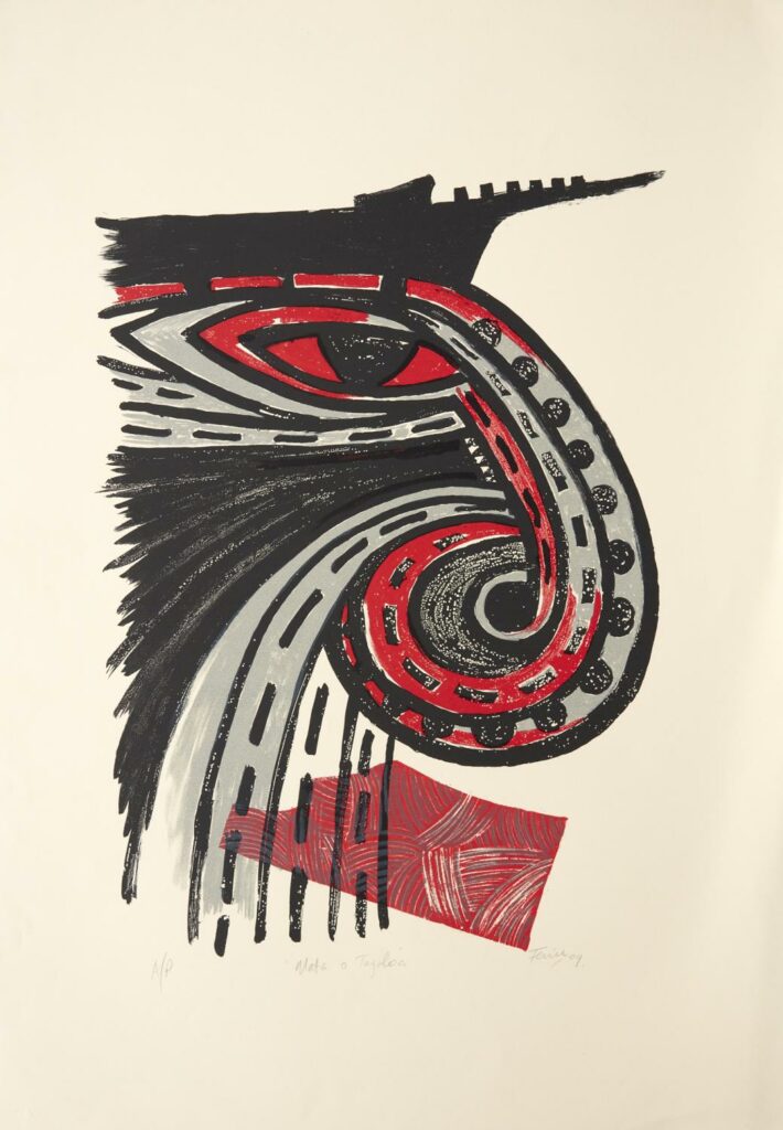 Fatu Feu’u explores motifs of Pacific and particularly his Samoan culture but with a strong modernist interpretation, in paintings, limited editions and dramatic sculptures. His love of Picasso and the early 20th century modernists is also evident, but he has established a distinctive style which sees him recognised as one of the leading New Zealand Pacific artists.