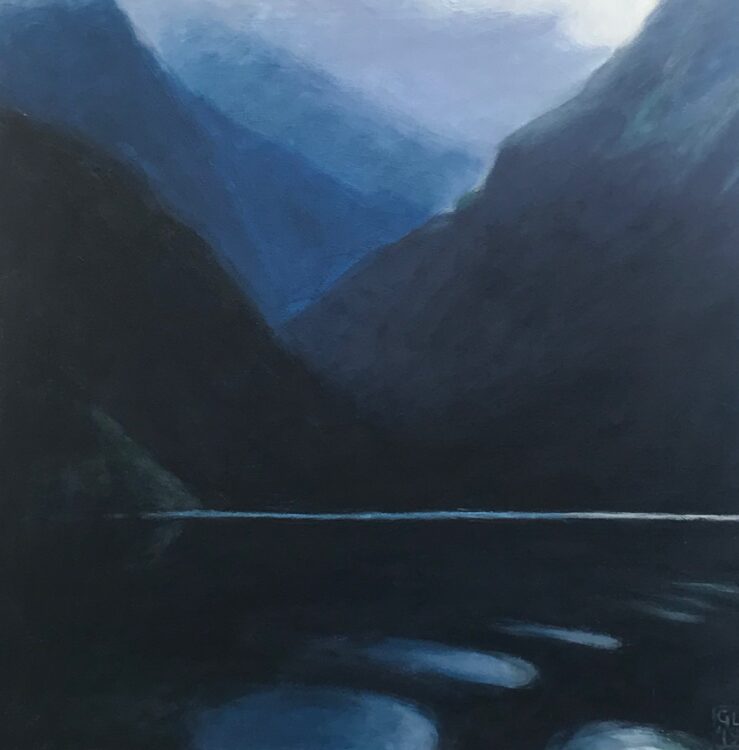 Gerda Leenards grasps fleeting moments, the transience of light and weather in paintings of infinite subtlety. Her works may appear to be landscape, yet are not – Leenards actually paints the light, the weather and echoes of memory, rather than the landforms, and is intrigued by ideas about the transformation of the land and water by the swiftly changing light. Born in the Netherlands, Leenards emigrated to New Zealand at the age of 10, and her Dutch heritage and awareness of the European masters does influence her work. She is often identified as one of New Zealand’s leading landscape artists, but doesn’t see these paintings as landscapes as such. ‘Often landscape is handled in a very stationary way: here are two cabbage trees and a roadway. It’s very descriptive of the road and the trees.’ She is conscious of the way painters like Turner and Constable explored the effects of weather. But she points out those painters were working at an exciting time when scientists were just beginning to understand weather and cloud formation. ‘There was a feeling then that the earth was permanent. Now everything is changing very fast.’ Issues such as global warming and the fragility of the earth interest her, and while she doesn’t paint it literally, this awareness has an influence on her painting of the transience of nature. Gerda Leenards emigrated to New Zealand as a child, and now lives and works in Wellington. A graduate of Ilam School of Fine Arts in Christchurch in the 1960s, Leenards has exhibited in the major public galleries in New Zealand and was three times a Visa Gold Award finalist. She has works in most public collections in New Zealand including Te Papa, the National Museum. Her work The Nature of Culture toured in the national show Inheriting the Netherlands. In recent years she has attracted critical acclaim for the way she captured the fragile and mist-laden world of Fiordland. She has simultaneously explored other territory, with a common thread surreal or moody weather, atmospheric vapour, and ambiguities created by the changes of light, including the Chinese landscape after journeys through that country following ‘the Blue Ribbon’. Gerda Leenards is featured in several respected New Zealand art publications, including Lands & Deeds, Gregory O’Brien’s book on the landscape tradition in New Zealand art.