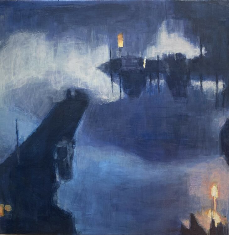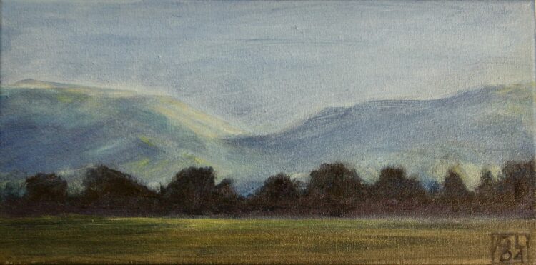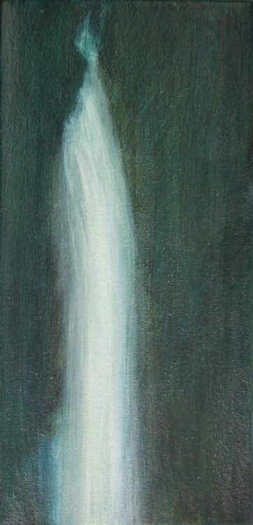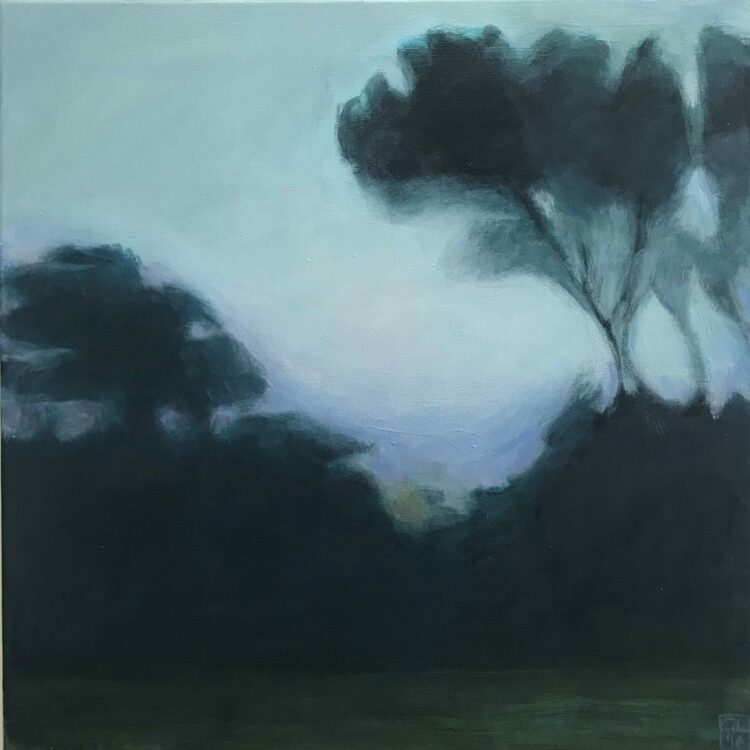 The slightly earlier Kanuka series were inspired by stands of trees holding to the edge of the riverbank near Foxton, underpinned by knowledge such as the response of trees to environmental degradation: limited sequestration of carbon dioxide, for instance. Her paintings are seductive, but the message may have an edge.