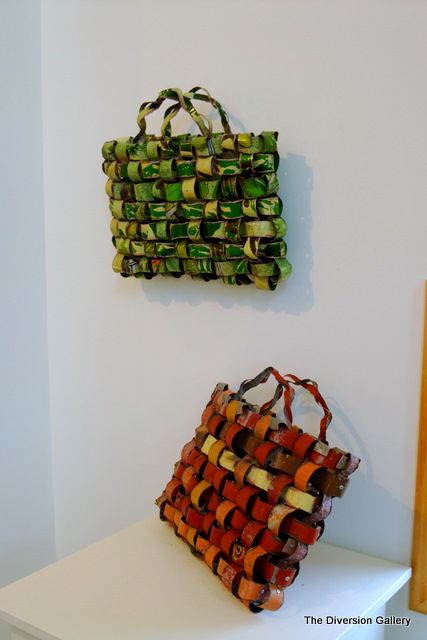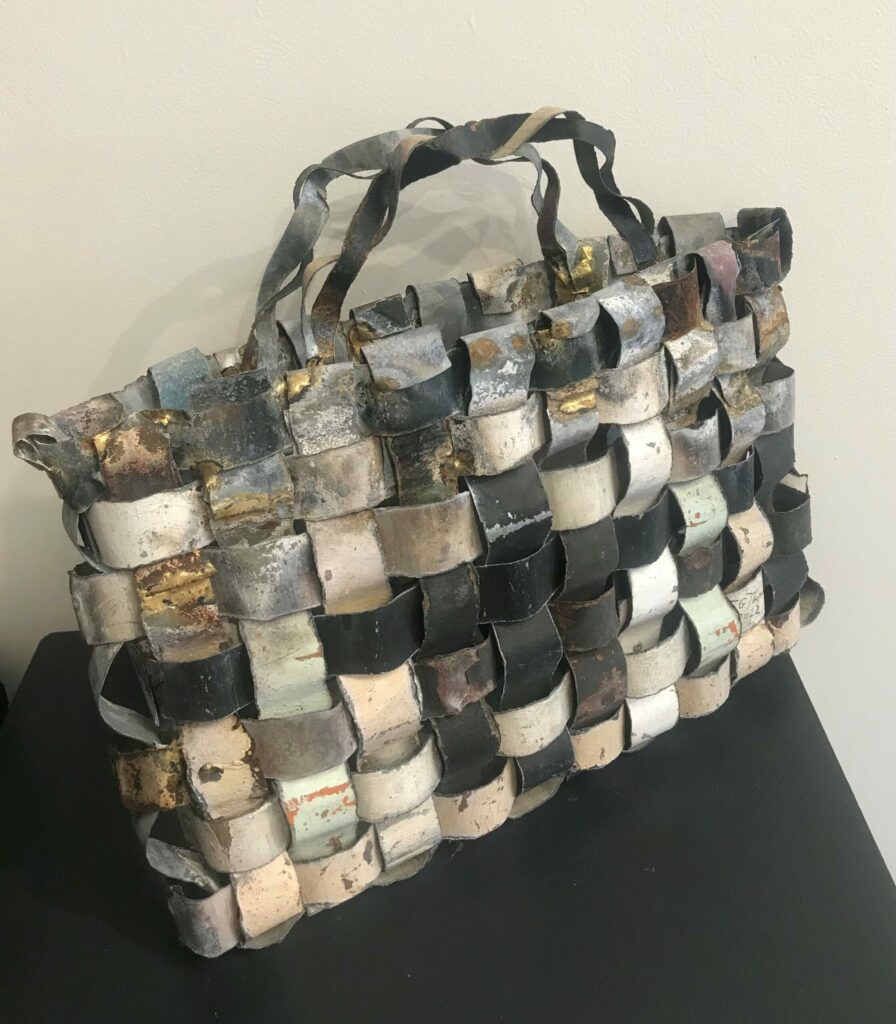 His recent abstract works defy the practical connotations of domestic objects and materials – such as mats, woven material and fabrics, a complete contradiction of practical and impractical when created out of corrugated steel and iron. His long-held interest in maps, as visual designs and as markers of our ‘place’, surfaces in a new way, with strips screenprinted, corrugated, and woven to play with ideas about our links to place. It could be read as how, no matter where in this country we come from, our lives are interwoven in unexpected ways.