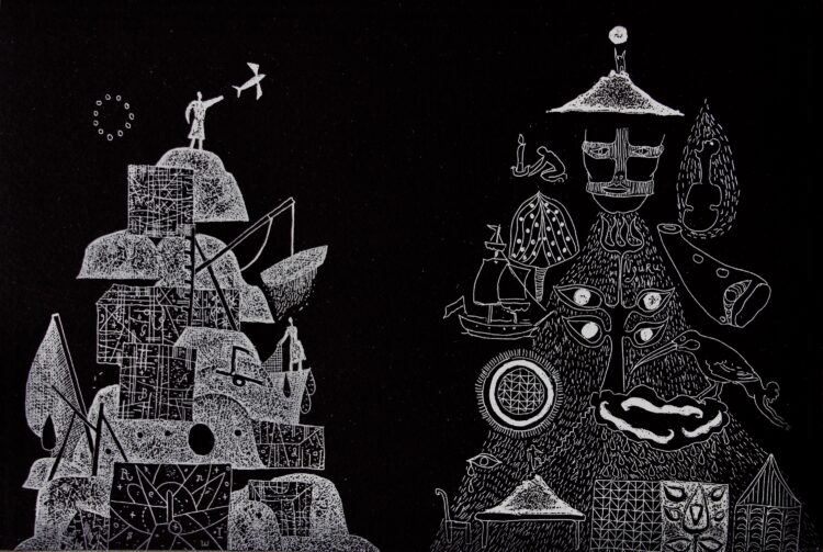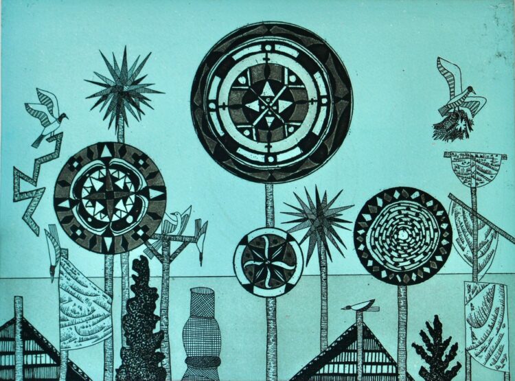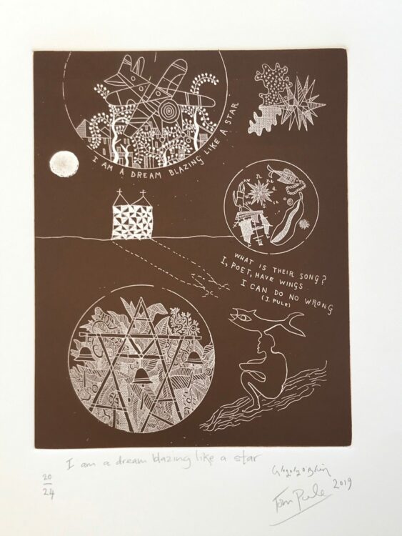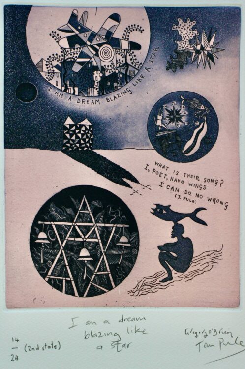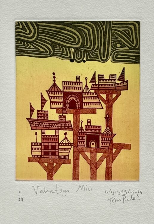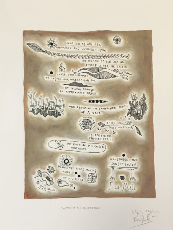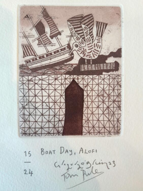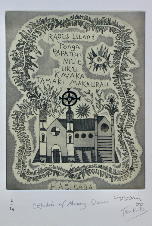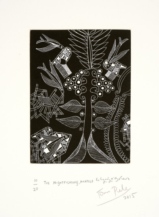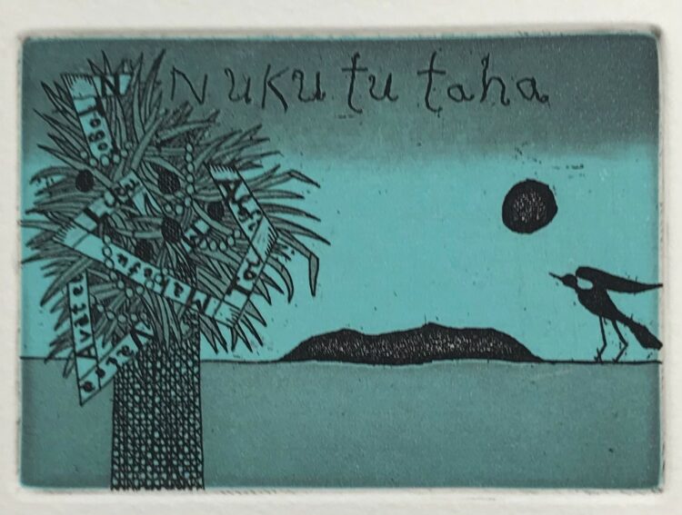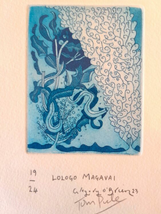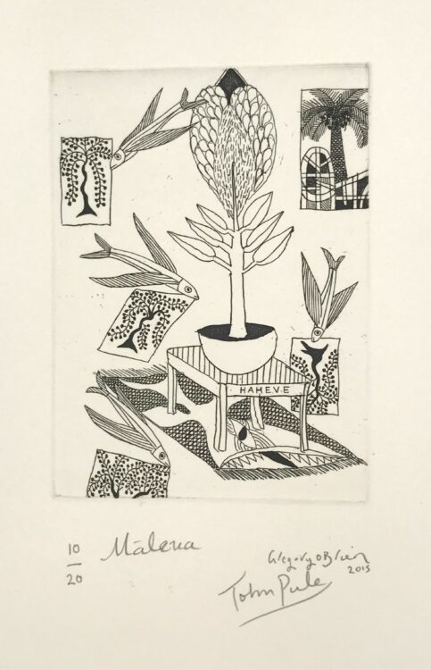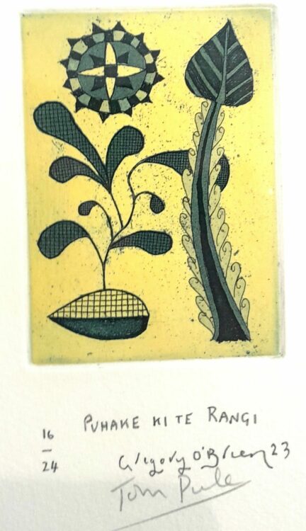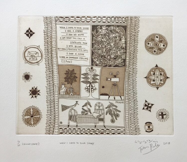 Born in Niue, and recognised as a leading Pacific NZ artist, John Pule has worked in colloboration with Gregory O’Brien frequently in recent years, particularly in etching and aquatint, resulting from their travels to the Kermadecs and Raoul Island.