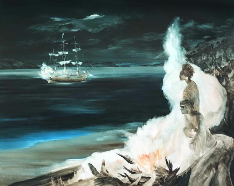 We have a new major work by John Walsh, from his trip to Meretoto/Ship Cove as part of the gallery’s First Contact project. He previously visited Fiordland in 2010 with three other artists at the invitation of documentary maker Peta Carey, to film their artistic responses to the places visited by Captain James Cook and painter William Hodges. You can view the documentary The Waterfall on YouTube. John Walsh also created an etching & aquatint for the National Whale Centre artist project.