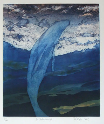 We have a new major work by John Walsh, from his trip to Meretoto/Ship Cove as part of the gallery’s First Contact project. He previously visited Fiordland in 2010 with three other artists at the invitation of documentary maker Peta Carey, to film their artistic responses to the places visited by Captain James Cook and painter William Hodges. You can view the documentary The Waterfall on YouTube. John Walsh also created an etching & aquatint for the National Whale Centre artist project.
