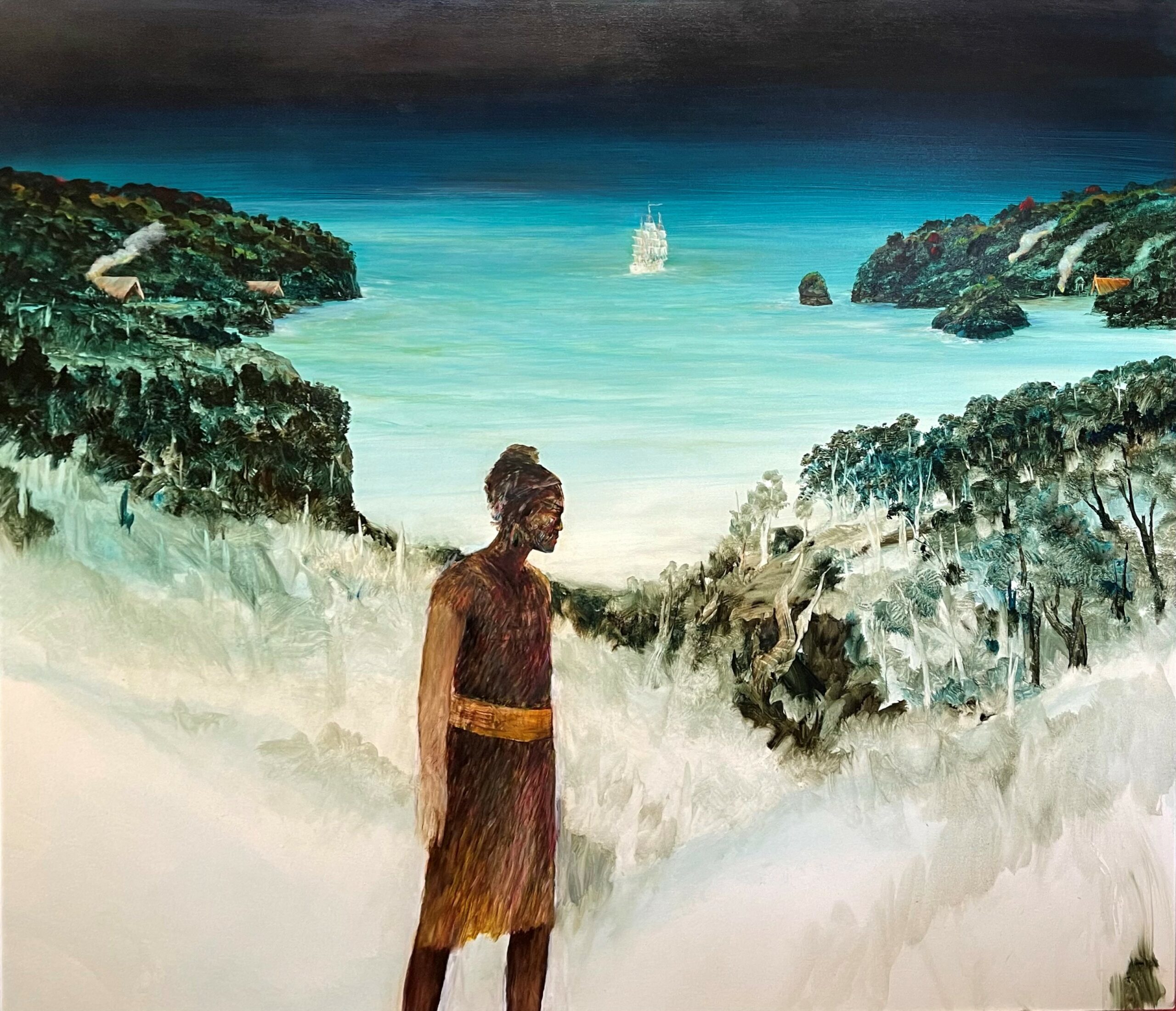 Born 1954 in Tolaga Bay, John Walsh is of Aitanga a Hauiti and New Zealand Irish descent. Although largely self-taught, he studied art at Ilam, Canterbury University in 1973-74. After many years primarily exhibiting around his home region of Gisborne and Eastland, John Walsh had his first major solo exhibition when he was nearly 40 years old, and quickly established a reputation for a mythical realism, founded in the landscape but often featuring mythological figures questing within, moving through or above the land. Walsh rose quickly to prominence, with works on an increasingly large scale. Often his works are in response to contemporary incidents, with a subtle thread of underlying humour, or more serious issues to do with human connection with the land, also influenced by Maori mythology, incorporating ancestral and legendary figures.