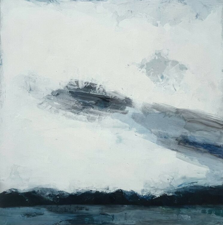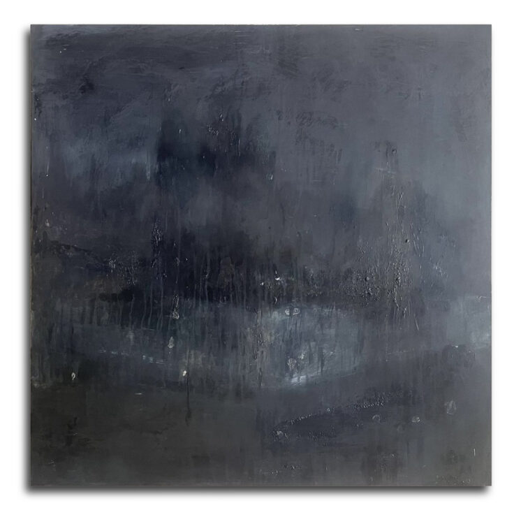 The work In Casting Light on Shadows continues with the theme of hiraeth, a prominent thread through Kara Burrowes’ work during her Master of Fine Arts at Canterbury University, completed in March 2023 and awarded Distinction. Seated in nostalgia and an inexplicable longing for ‘home’, Kara works intuitively to express her inner dialogue. Drawn to shadow, reflection, muted, foggy and hazy memory, Kara works to get the feeling translated onto a surface through the use of a variety of media, often unorthodox. Beneath the layers of sublime acrylic paint, scraped back and reworked, are media such as resin or wax, sometimes burned, giving a texture and a sense of something unknown – or unknowable – concealed beneath.