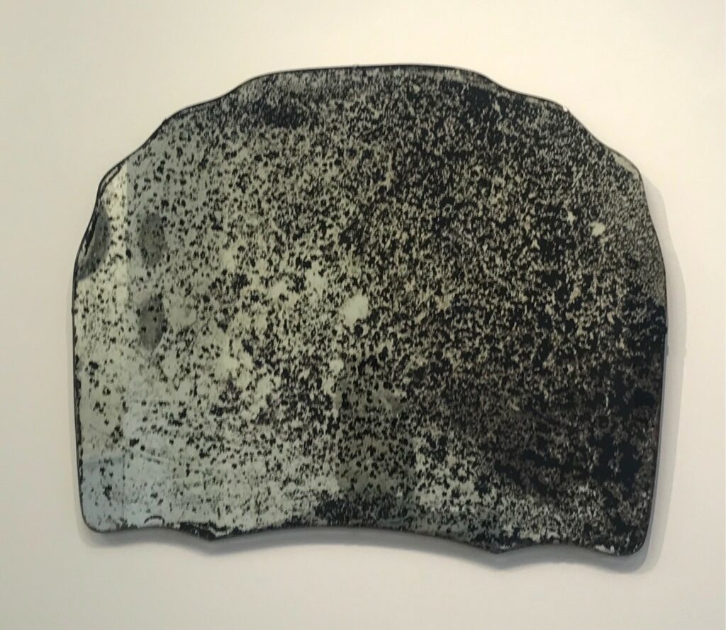 Mary McFarlane has developed a strong following for her transformations of mirrors, especially vintage pieces, into glimmering artworks full of mystery and memory, intensely personal to herself and to the viewer, created using her unique, evolved techniques. Some centre on the Waterfall motif, founded in trips to Fiordland throughout her life; these connect to New Zealand’s history of contemporary art from William Hodges’ 18th Century Fiordland paintings through to Colin McCahon’s influence on the waterfall becoming part of our visual identity. She has also continued her acclaimed Moon series works, based on the feeling the full moon inspires, full of portent. Her actual process remains as mysterious as the moons themselves, as David Eggleton described in a review in Art New Zealand in 2012: ‘McFarlane has learnt how to endow her mirrors with magic, alluding to the aura of inner beauty, to the dark side of the self.’
