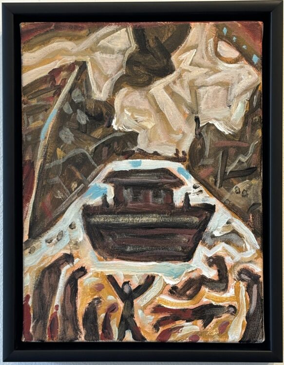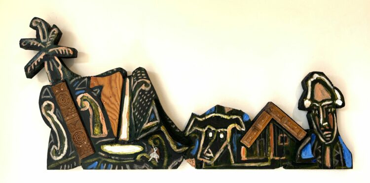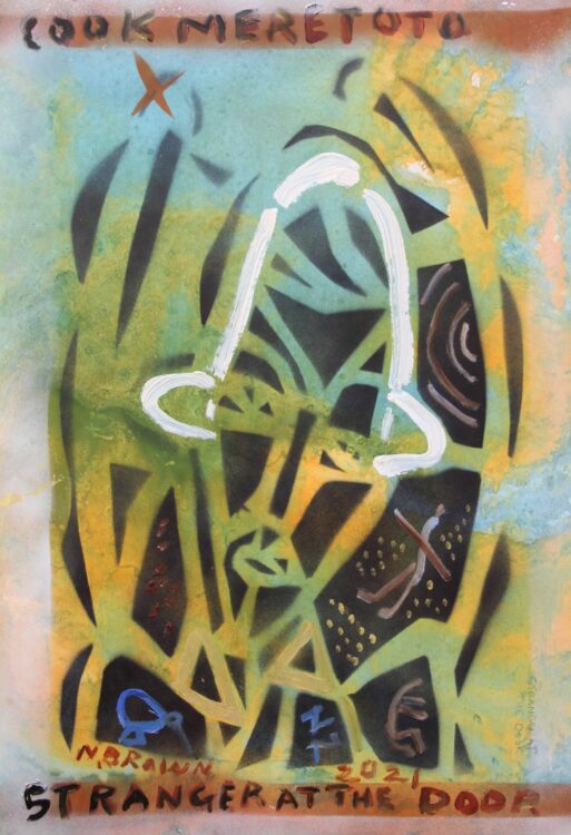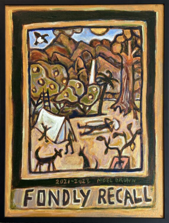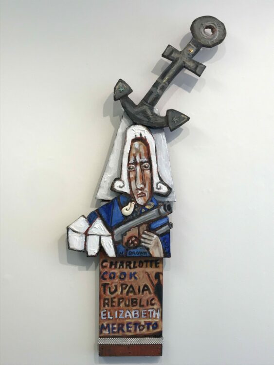 Meretoto/Cook series: Nigel Brown continues to challenge the myths and truths of Captain James Cook’s engagement with New Zealand. Latterly Brown has been involved in a project of artistic encounters with Ship Cove/Meretoto in Tōtaranui/Queen Charlotte Sound, Cook’s preferred anchorage in Aotearoa. His sense of the ironic is often directed at the ‘iconic’: the kererū, the whare, the kiwi, the ponga tree, the dramatic landscape.