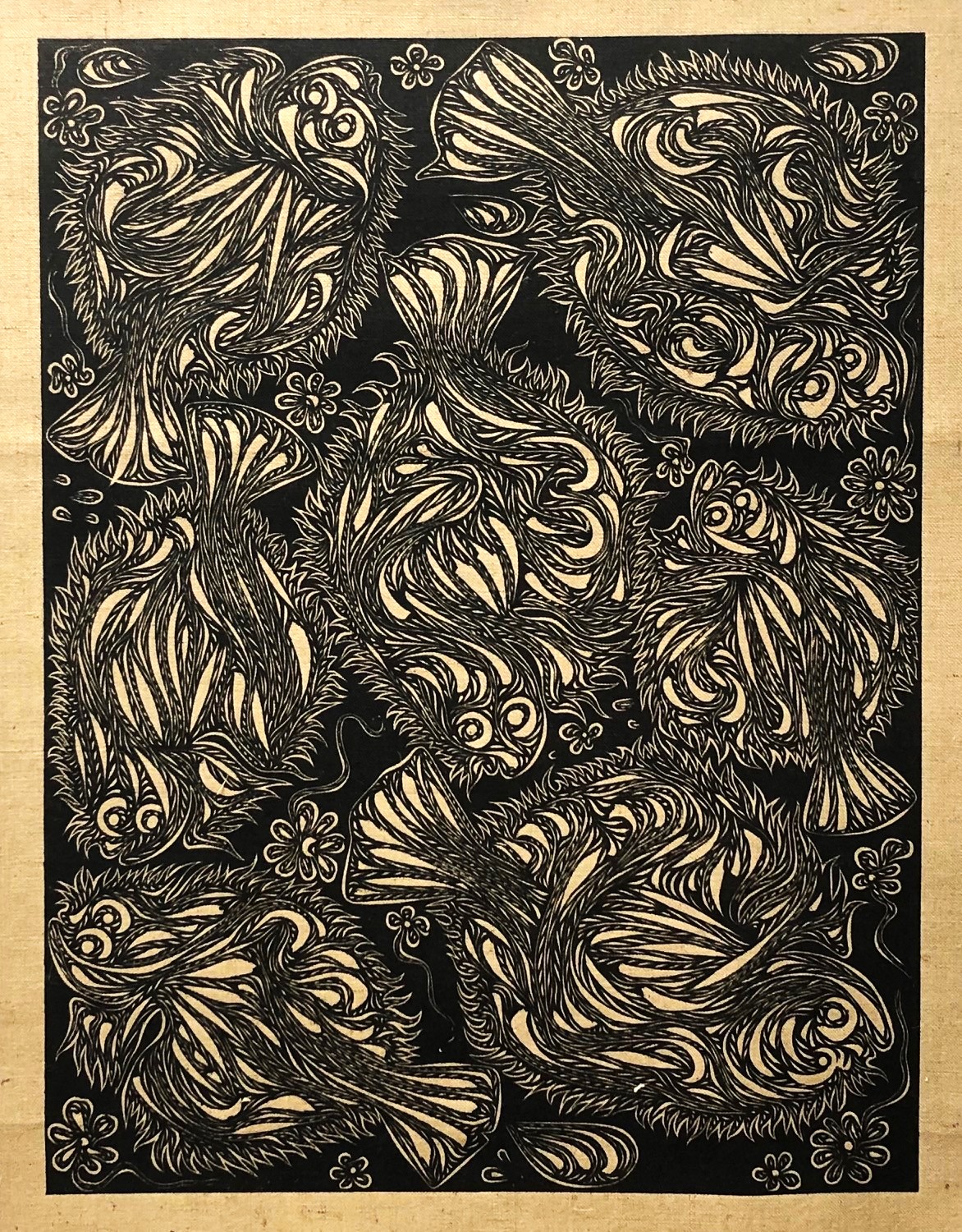 woodcut ink on hessian, 1/5