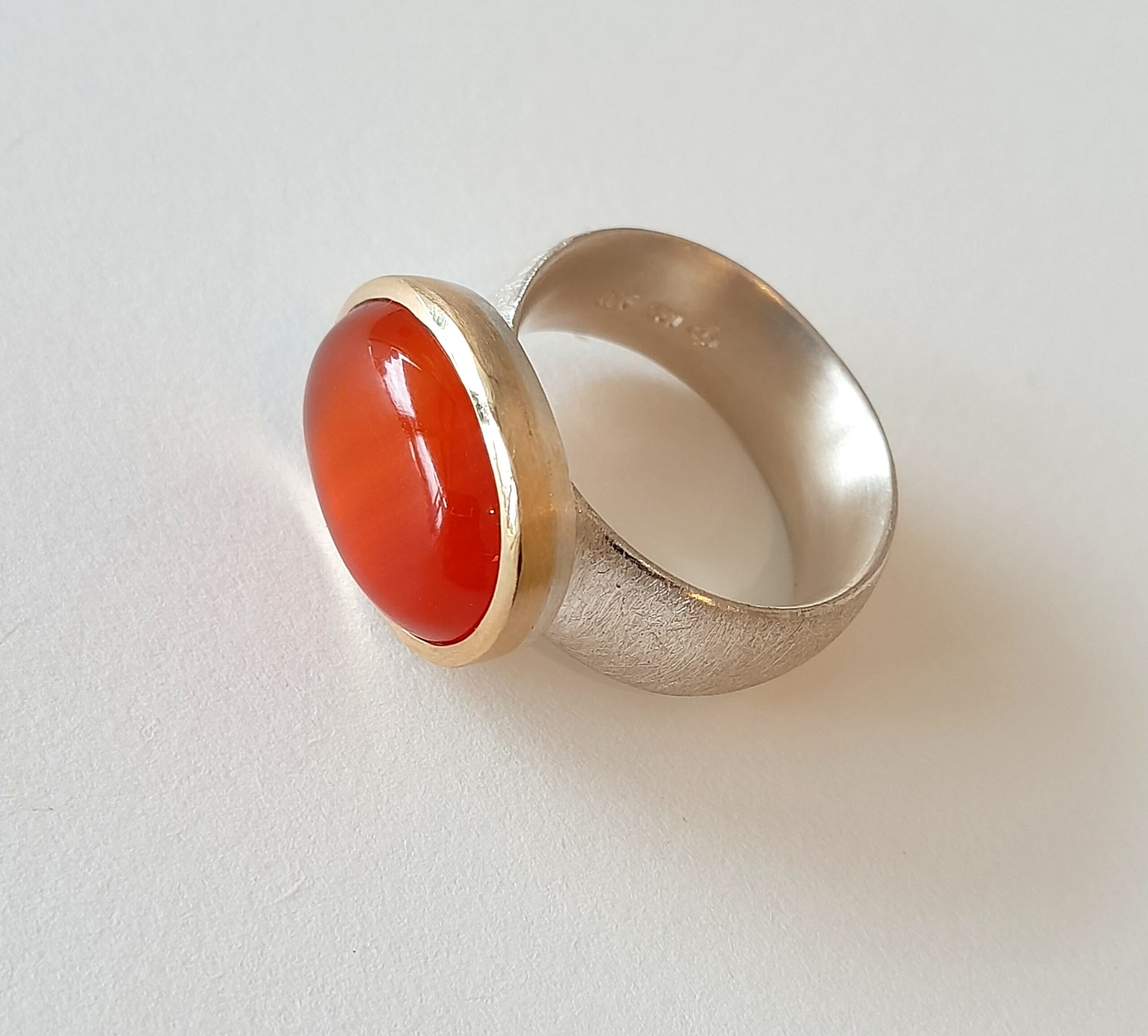 Carnelian cabochon (15x11mm oval), sterling silver, 18ct gold