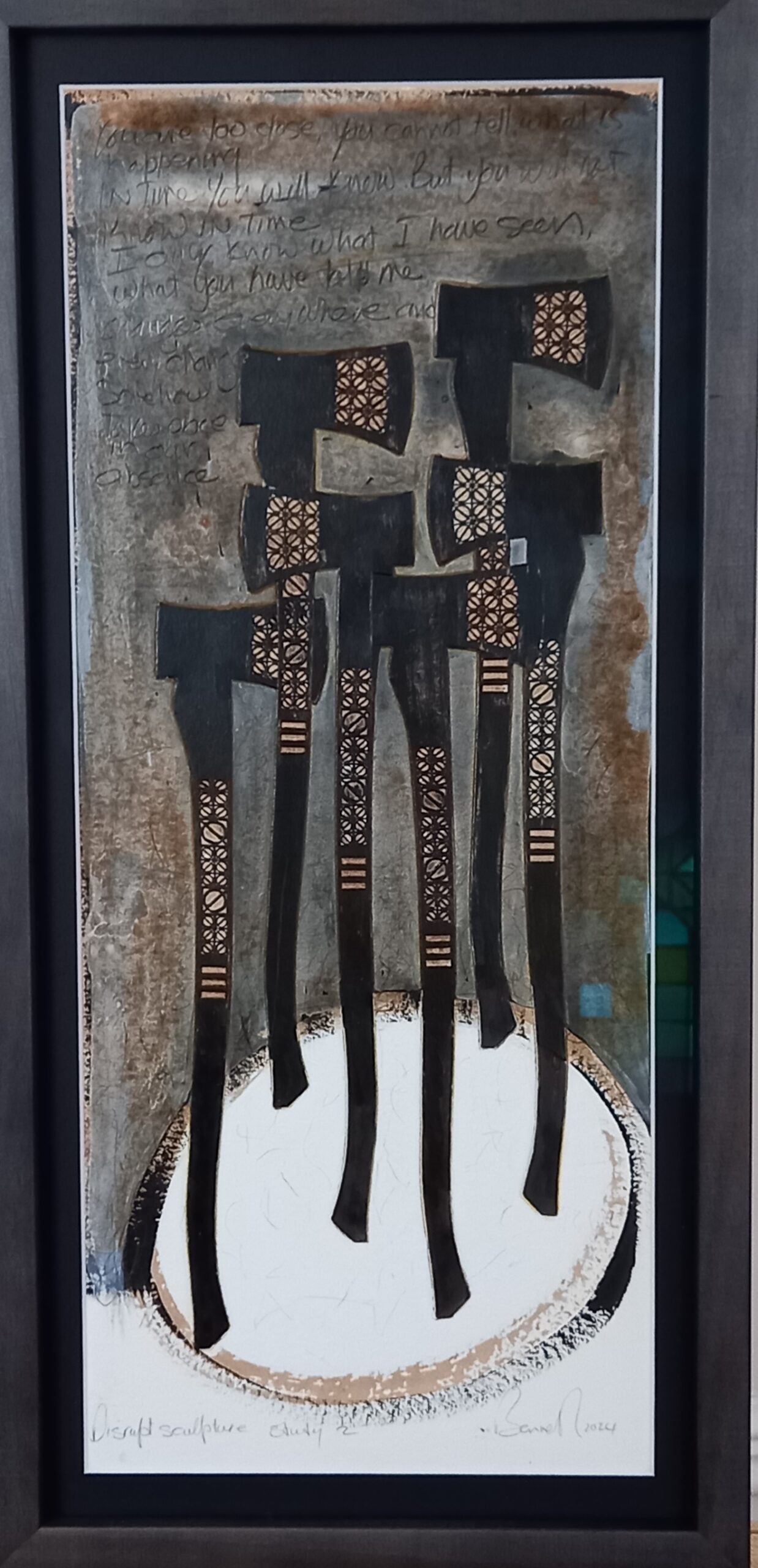 acrylic & kakishibu collage on awagami bamboo paper