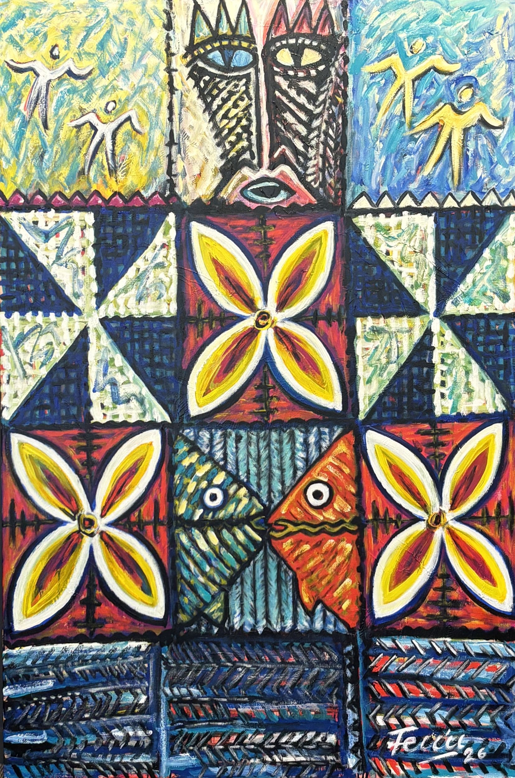 Fa’alasi can be translated as to bring into harmony; the motifs representing new life, ocean journeys, the overseeing god Tagaloa, the gogo – ancestor spirits, guardians watching over.