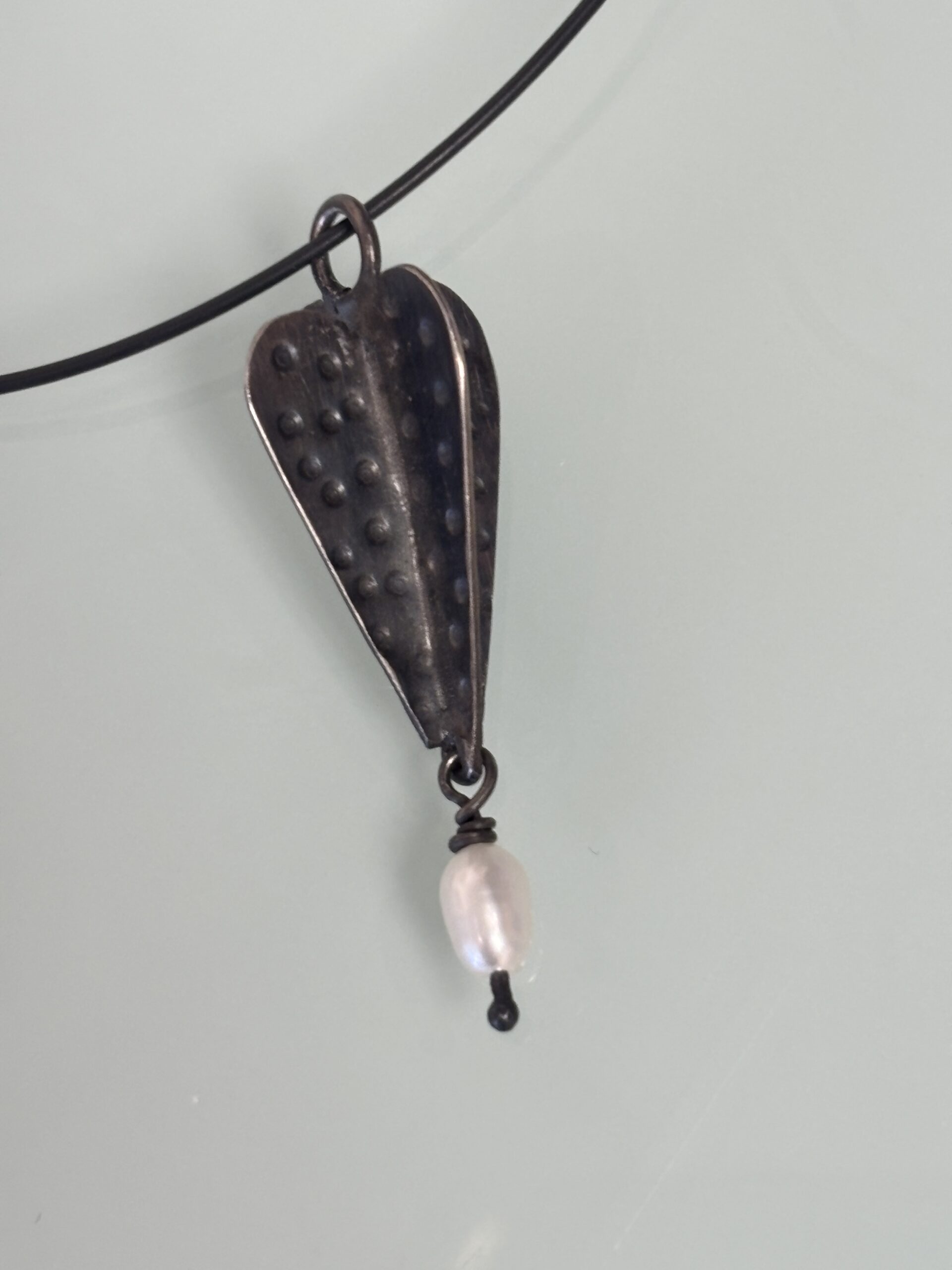 sterling silver, oxidised, pearl, cord