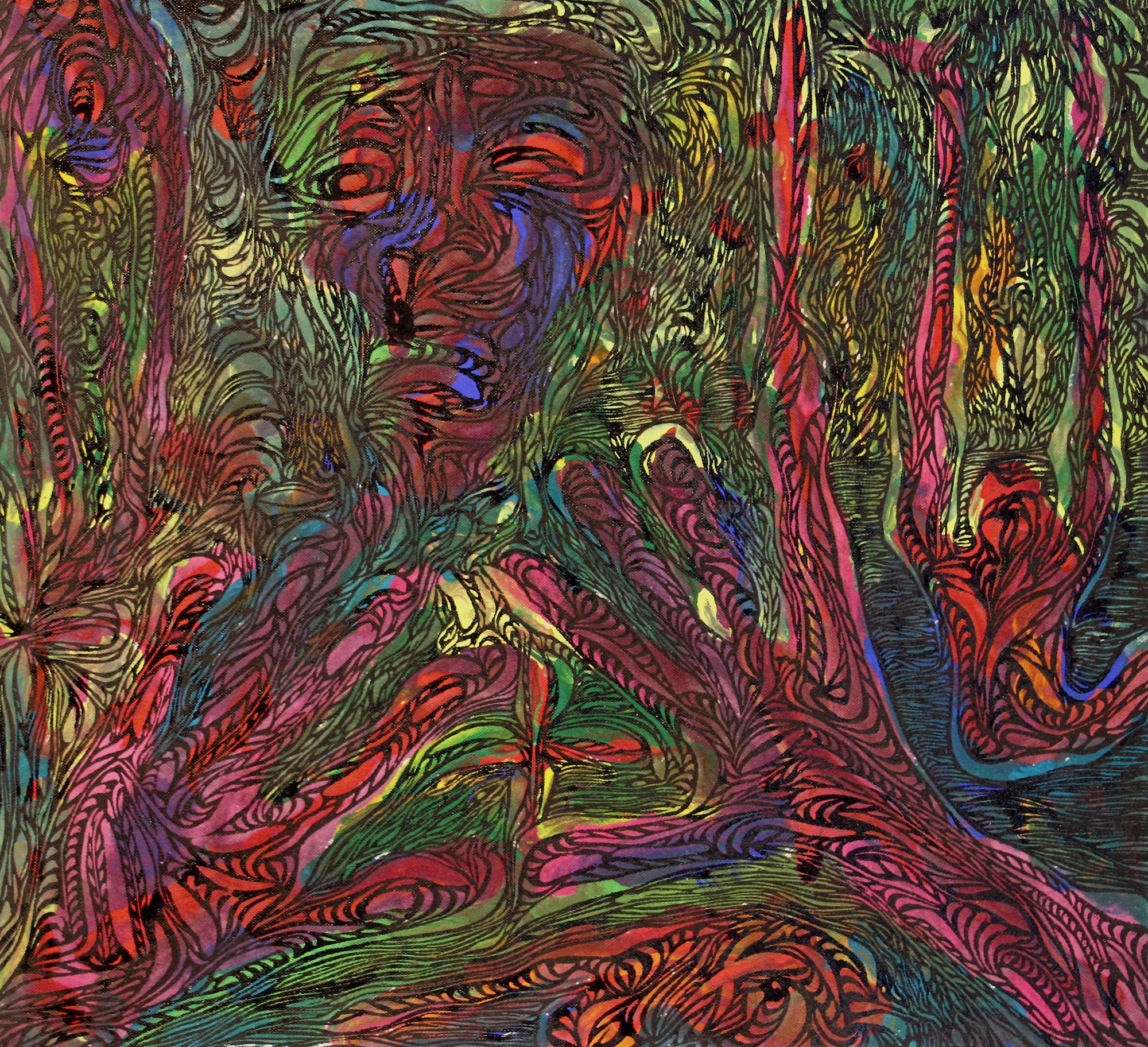 Acrylic and woodcut ink on embossed canvas, unique.