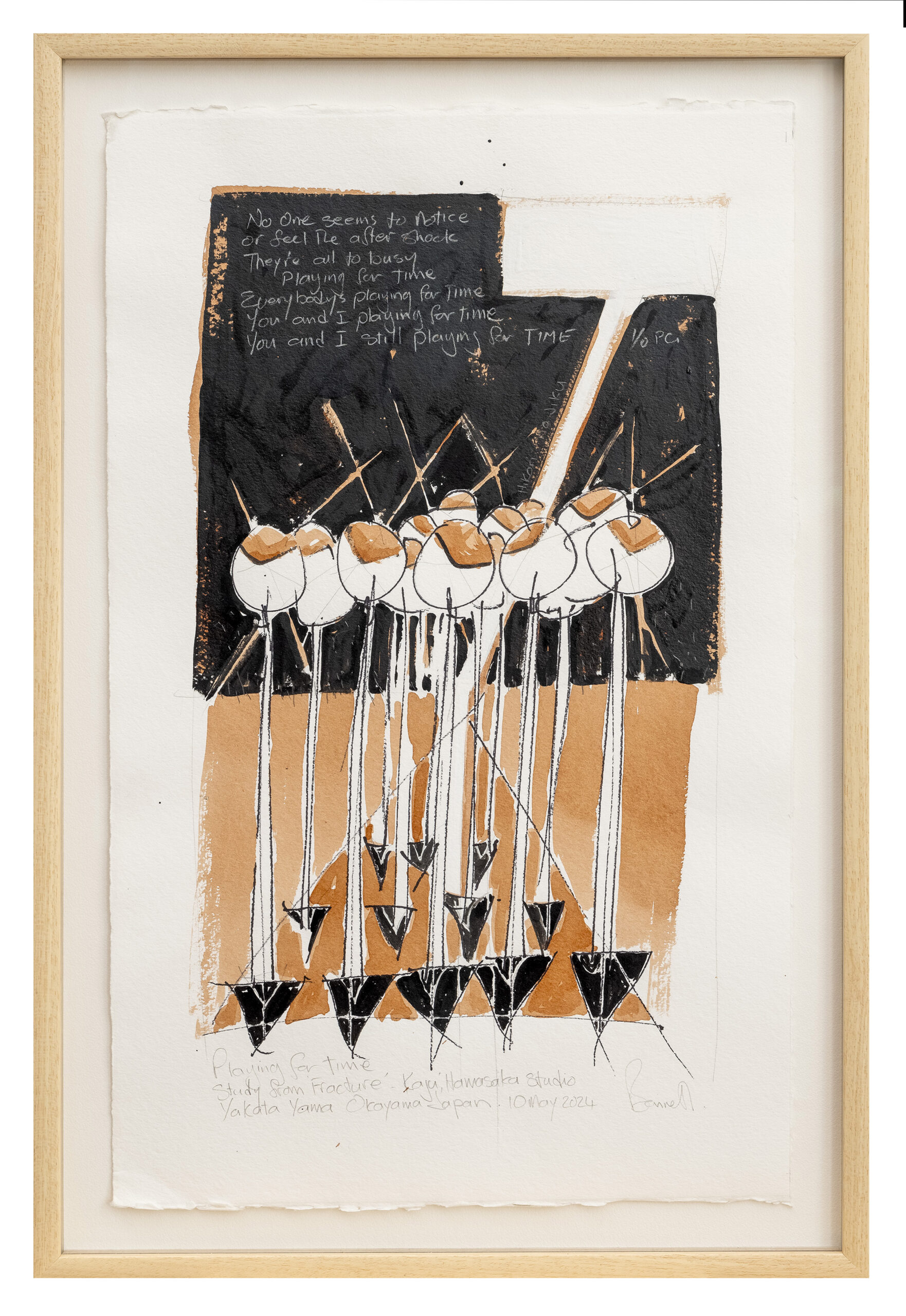 Playing for Time – text in this work references a song by Peter Gabriel. Study of sculpture ‘Fracture’ created during Bennett’s residency in Japan, 2024.