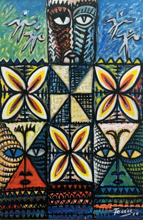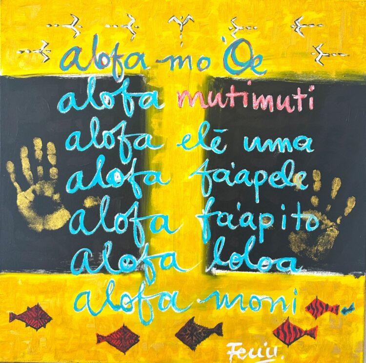 Oli Oli is about finding joy and uplift in these difficult times. Difficult in terms of real connection, environmental issues, the economy, uncertainty, political extremism, feeling overwhelmed. Fatu urges us towards connecting more closely with those we love, family, friends, the natural world, our histories, our ancestors. The energy of these paintings alone is an uplift as the early response has shown.