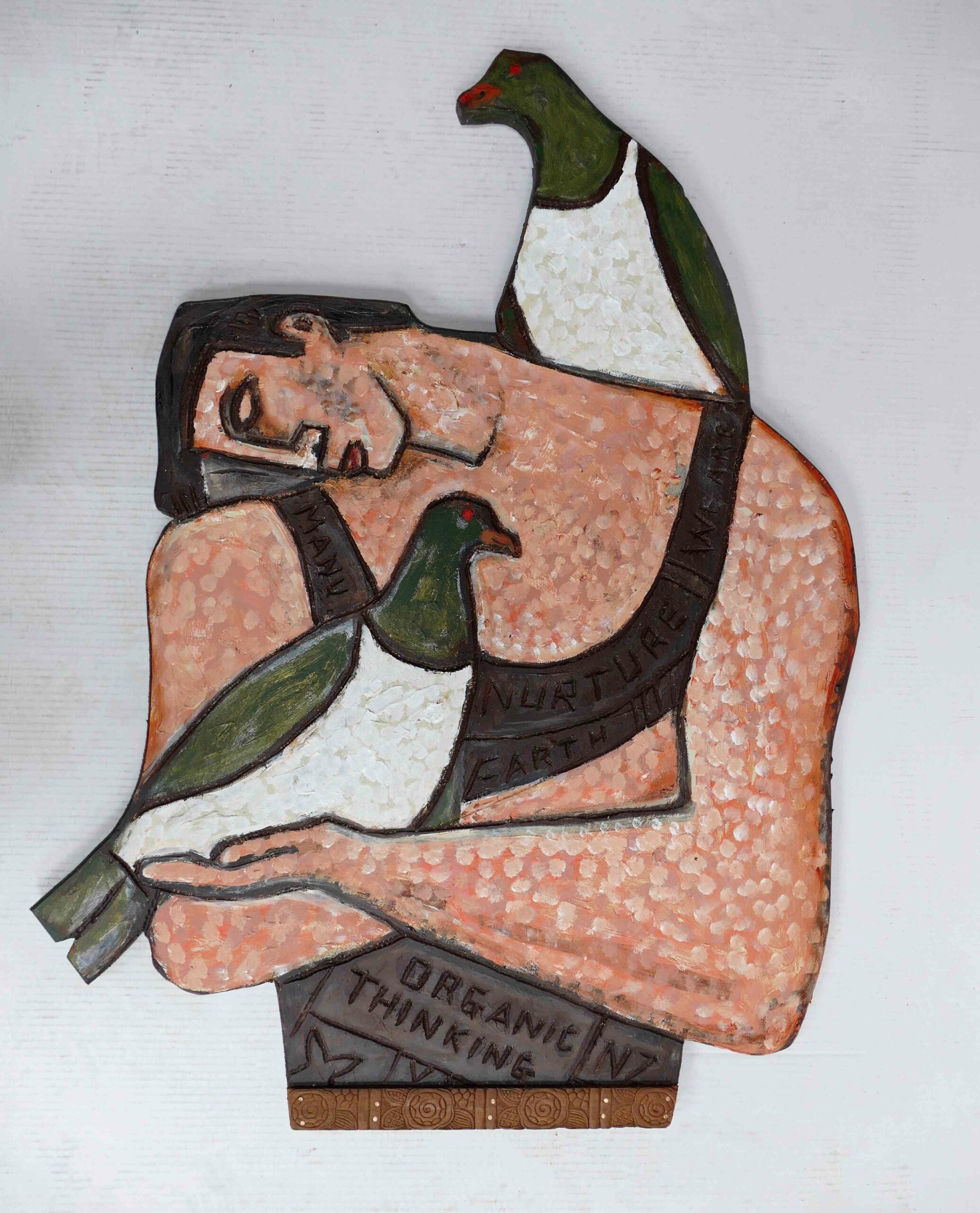 The title ‘Organic Thinking’ is as layered as the works. It refers to how we should live on the planet – linked to the ways of the birds we so admire and identify with; but also to Brown’s processes of expressing those ideas – working intuitively, with an organic painterly approach, loose lines, an earthiness. He contrasts this with an obsession with scientifically approaching the world, the birds, the environment.